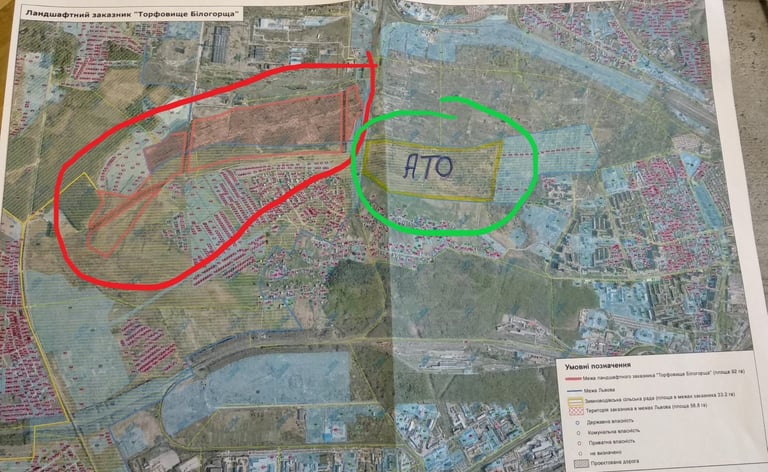 І це при тому, що селищна рада вже мала на руках проект свого генплану. Його розробив Містопроект. І у цьому документі було чітко вказано інформацію про об‘єкт природо-заповідного фонду. Цікаво, що саме таку версію генплану – із заказником «Торфовище Білогорща» – Рясне-Руська сільрада навіть оприлюднила на своєму сайті.